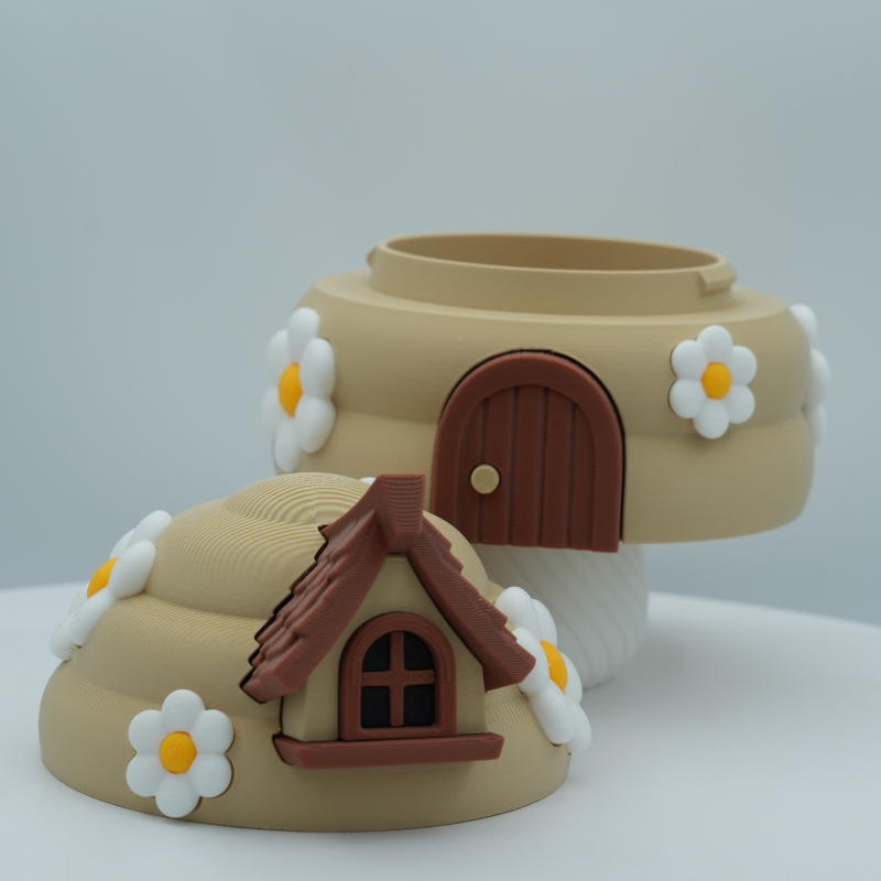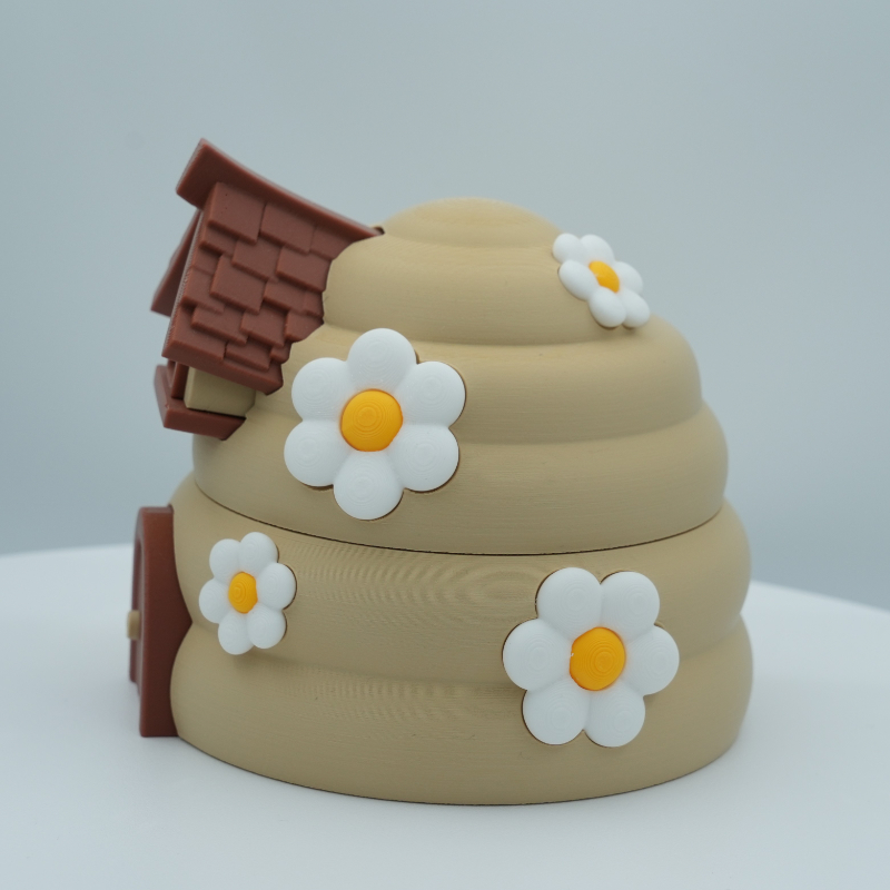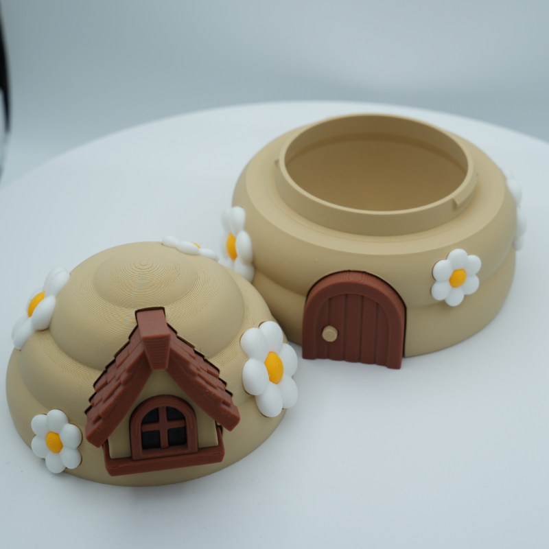 Dobrodošli v najbolj prikupnem čebeljem domu! Ta ročno dodelan interaktivni panj ni le čudovit dekorativni element za otroško sobo, temveč skriva tudi zabavno presenečenje. V njegovi notranjosti lahko shranite sladko presenečenje, nakit in podobno.