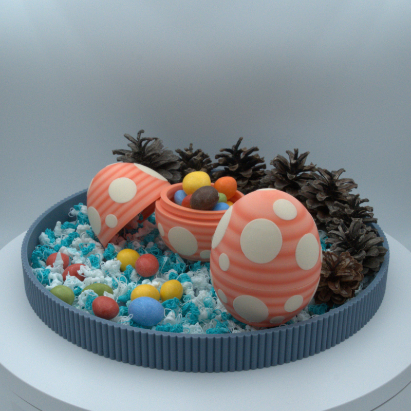 Jajce je sestavljeno iz dveh delov, ki se enostavno odpirata in zapirata, zato je idealno za shranjevanje drobnih daril, sladkarij ali drugih majhnih predmetov. Zaradi svojega privlačnega videza je lahko tudi čudovit dekorativni element na mizi, polici ali v velikonočni košarici.