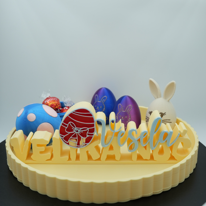 Okrasni napis “Vesela Velika noč” kot čudovit dodatek praznični okrasitvi.