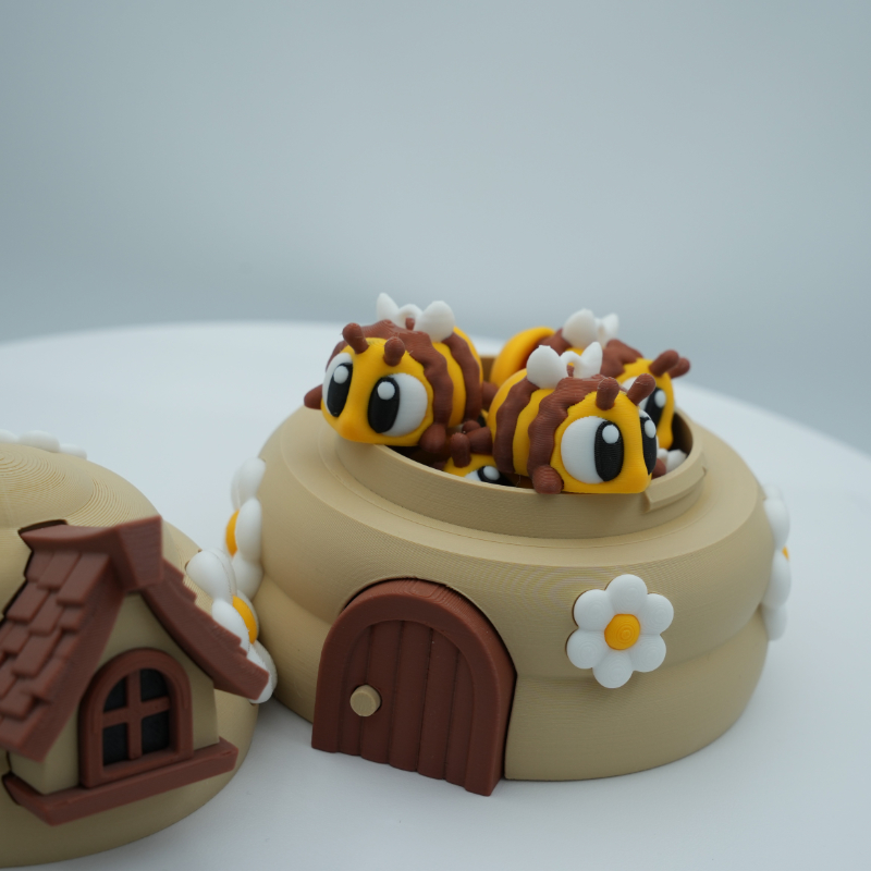 Dobrodošli v najbolj prikupnem čebeljem domu! Ta ročno dodelan interaktivni panj ni le čudovit dekorativni element za otroško sobo, temveč skriva tudi zabavno presenečenje. V njegovi notranjosti domuje družina veselih čebelic, ki komaj čakajo na nove pustolovščine.