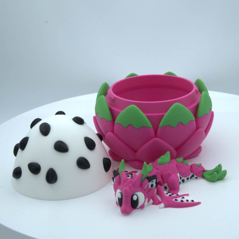 Zmaj z velikimi izrazitimi očmi in v celoti gibljivim telesom. Sadni zmaj je odličen za igro, kot dekoracija ali kot darilo. Jajce se odpira in zapira, kar je odlično presenečenje za otroke in zbiratelje.